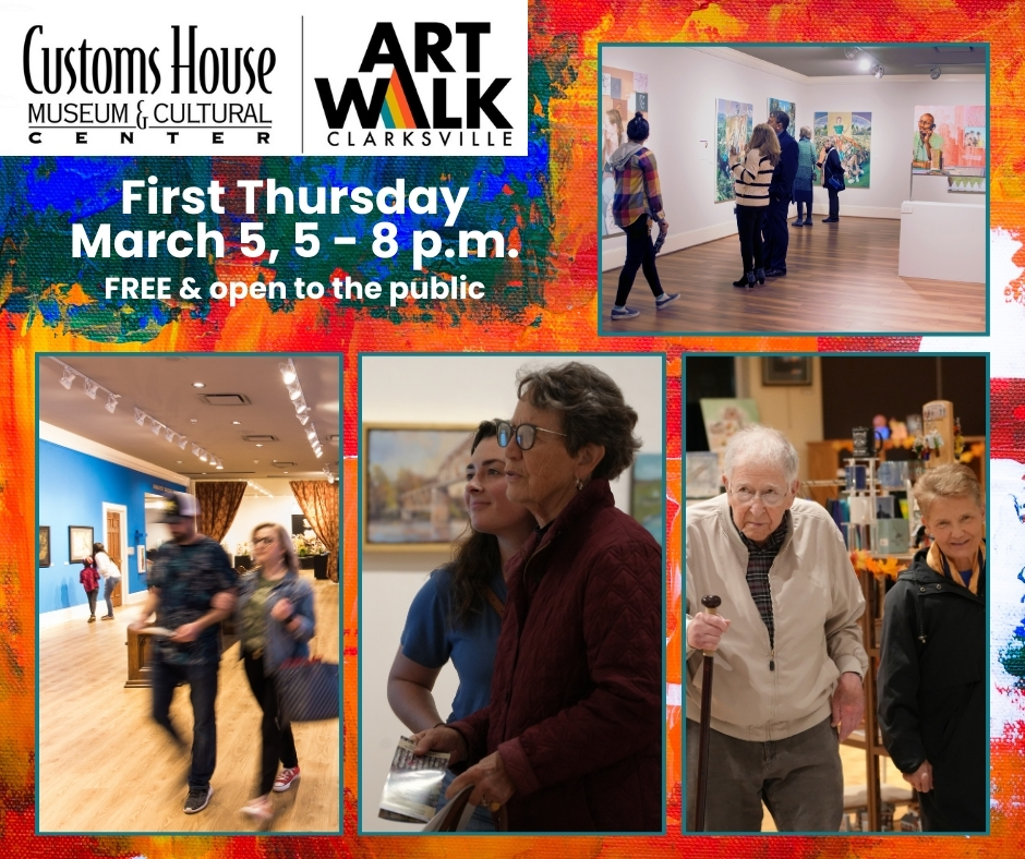Mark your calendars for the March First Thursday Art Walk! The Customs House Museum offers free admission during the First Thursday Art Walk from 5 – 8 p.m.